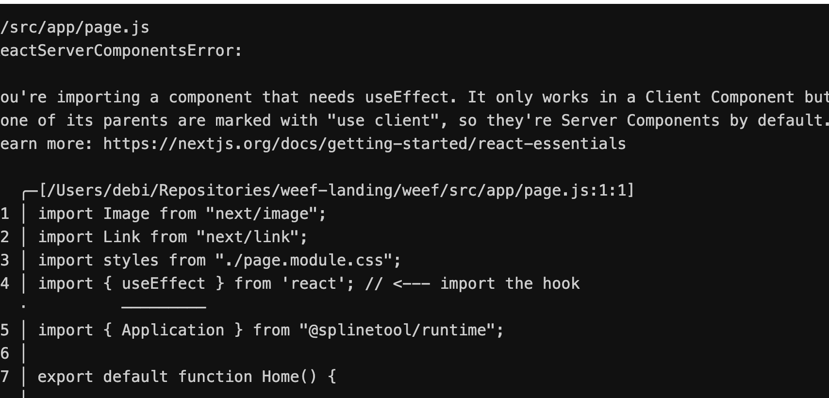 It only works in a Client Component..? 잉? 그렇다 나는 Server Component를 작업하고 있는 것을 까먹고 있었다.