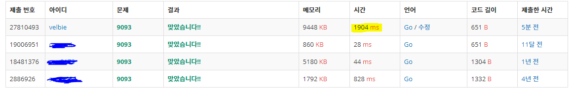 Go로는 총 4명 제출했고, 나만 시간이 엄청 걸린다ㅎㅎ;