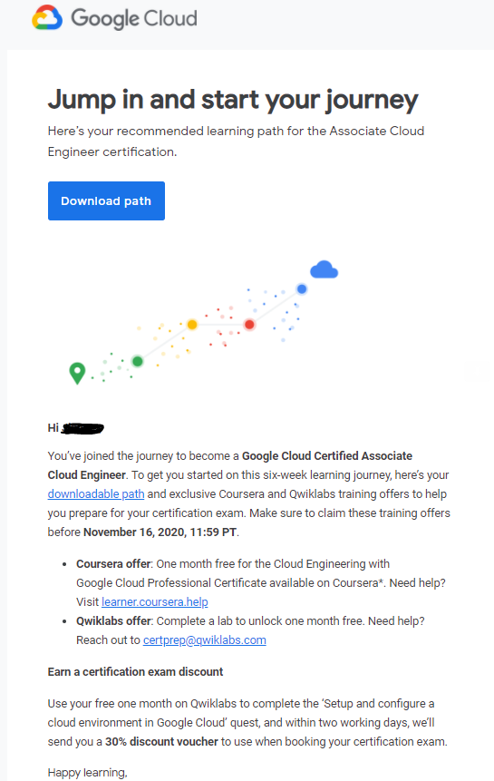 메일에 있는 첨부파일을 클릭하니 coursera와 quiklabs 링크가 담겨져 있는 pdf를 받았습니다.